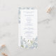 Esta melancolia floral cartão do programa de casamento apresenta delicadas flores azuis francesas, perfeitas para um casamento romântico, vintage ou com temas de jardim. Oferece um toque personalizado e elegante para sua celebração. O texto personalizável e as cores fazem dele um eterno e uma escolha artística para o seu dia especial.