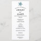 Este moderno programa de casamento de estrelas-do-mar é perfeito para uma praia ou cerimônia temática tropical. É perfeitamente personalizável. Para adicionar ou remover seções, alterar a cor do texto/plano de fundo ou ajustar o espaçamento, clique em "personalizar mais." Itens correspondentes disponíveis.