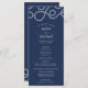 Nosso programa de casamento de chic costeiro apresenta os detalhes da sua cerimônia em letras brancas em azul marinho, acentuado com corda náutica looping no topo. O verso lista os membros da sua festa de casamento com campos de texto facilmente editáveis. Coordena-se com nossa coleção de convites para casamento Starfish para verão elegante, praia ou casamentos náuticos. Use os campos modelo para adicionar informações sobre sua cerimônia e noivado e clique em "Personalizar" para reposicionar elementos, se necessário. Precisa de ajuda? Entre em contato comigo através do link "Perguntar a este Designer" nesta página.