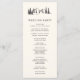 O nosso programa de casamento de chic rusticado e vitorioso apresenta os detalhes da sua cerimônia com uma ilustração esboçada de picos de montanha, pinheiros e um rio fluindo ao longo do fundo. O verso lista os membros da sua festa de casamento com campos de texto facilmente editáveis. Coordena-se com a nossa coleção de convites de casamento do Mountain Sketch. Use os campos modelo para adicionar informações sobre sua cerimônia e noivado e clique em "Personalizar" para reposicionar elementos, se necessário. Precisa de ajuda? Entre em contato comigo através do link "Perguntar a este Designer" nesta página.