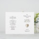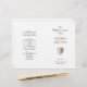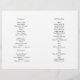 Programa de casamento de praia em preto e branco com uma concha em forma de solteiro e coração na frente. Todo o texto é preto com uma grande mídia e segurando os nomes na frente. Modelo simples e elegante para uma cerimônia temática tropical.