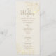 Este elegante programa de casamento apresenta ilustrações florais de ouro delicadas em um fundo de marfim macio com modernos roteiros e fontes serif. Perfeito para listar sua ordem de cerimônia e detalhes de festa de casamento em um layout formal e refinado. Um eterno adicional ao seu clássico dia de casamento.