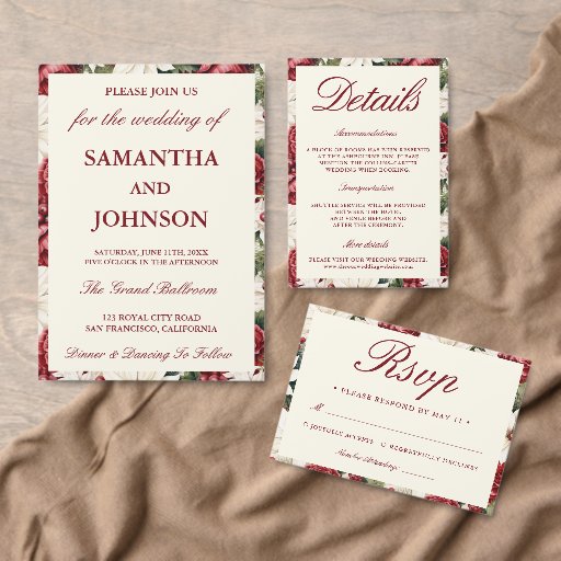 Modern Burgundy Vintage Ivory Floral Wedding SuiteCriado por persisruth shiny