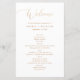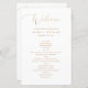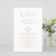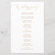 Este programa de casamento apresenta uma caligrafia elegante em estilo ouro, emparelhada com texto serif limpo em fundo branco. Projetado para simplicidade e sofisticação, ele delineia sua ordem de cerimônia em um layout claro e fácil de ler. O efeito de ouro impresso (não folha real) cria um toque luxo sem custo extra. Perfeito para casamentos modernos, minimalistas, clássicos ou formais. Este programa personalizável adiciona um detalhe refinado e pessoal ao seu grande dia.