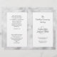 O programa de casamento da Igreja com uma amostra de texto para uma cerimônia de casamento católica - este é apenas um exemplo, e não deveria ser a verdadeira ordem da cerimônia. Preencha os modelos de acordo com as suas necessidades. Os espaços podem ser adicionados para preencher entre linhas, conforme necessário. Fundo floral branco com painéis brancos para redação em quatro áreas de modelo. Quando o papel for dobrado pelo comprador, ele se tornará um programa dobrado, escrevendo em quatro páginas - frente e verso e lado - cada folha de papel é um programa. O tema neutro é perfeito para uma cerimônia de casamento cristã branca.