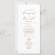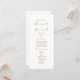 Capture a essência da elegância com nosso programa minimalista de cerimônia de casamento branco adornada com um coração romântico de corda de ouro e um simples roteiro de caligrafia. Perfeito para uma celebração moderna do amor.