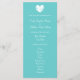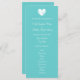 Elegante programa de casamento azul e branco de turquesa com coração rústico. Modelo de vazio com tipografia de na moda. Parte de um conjunto de temas românticos. Trendy inspirational stationery design para noiva de classe e noivo se casando. Inclui nomes personalizados, data, local, ordem do serviço de cerimônia e festa de casamento. Acessórios e suprimentos bonito para planejar seu casamento, chá de panela, noivado e muito mais. Também é bom para a festa de casamento do tema da praia.