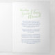 Um programa de renovação do casamento azul-verde de arte moderna de seis páginas. Edite este programa de casamento com seus próprios nomes de renovação de casamento, datas, introdução, redação de cerimônias, assistentes de festa de casamento, foto de seu primeiro elopeio ou casamento restrito, e seus obrigados. Arte original e design por www.mylittleedenweddings.com