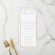 Menu folha única, tamanho: 10,16 x 22,86 cm, papel: Semi-brilho Básico
