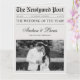 Dê uma surra no seu casamento com este programa de estilo de jornal tradicional, com sua foto personalizada e detalhes editáveis. Adicione facilmente seus próprios detalhes clicando na opção "personalizar".