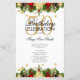 Design de "Programa de Festa de aniversário" de Natal Elegante com decorações de Natal e Confetti Glitter Dourado com texto personalizado.