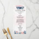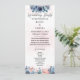 Este programa de casamento moderno combina uma vegetação arejada com toques de folhas verdes, apresentando um motivo botânico elegante que inclui delicado eucalipto aquarelado combinado com folhas cintilantes em dourado. Abrange detalhes essenciais, como os nomes dos noivos, a data e o local do casamento, uma mensagem sincera de agradecimento, a ordem da cerimônia, detalhes sobre os membros da comitiva nupcial e a opção de incluir uma tocante homenagem "em memória amorosa".