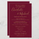 Elegante burgundy e programa de fim de semana de casamento com script dourado com nomes de estilo de assinatura. Personalize com os detalhes do seu fim de semana de casamento em letras brancas chic. Projetado por Thisnotme©