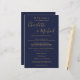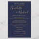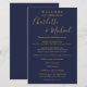 Elegante programa de fim de semana de casamento com escrita azul marinho e dourada apresentando nomes em estilo de assinatura. Personalize com os detalhes do seu fim de semana de casamento em letras brancas elegantes. Desenhado por Thisisnotme©