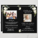 Programa de Fotografia Funeral Memorial da Ordem de Serviço. Lembrança funerária, celebração da vida. Este design apresenta flores brancas de aquarela, sobre fundo preto. Use a ferramenta Personalizar para adicionar suas informações. Para obter itens correspondentes, visite minha Comemoração Floral da Coleção de Simpatia de Vida.