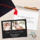Anúncio de Graduação Negra 2 Foto do Programa de Formatação em 2022 da Paz Moderna. Envie a feliz notícia do seu Formando de Classe de Mais velho Segundo grau com este design minimalista em preto clássico. Encontre suas duas fotos casuais favoritas do seu formando e simplesmente substitua as amostras no modelo. O cabeçalho Ano do Mais velho de Paz está em um estilo de escrita manual definido abaixo e o nome do seu formando e Segundo grau ou Colégio e Classe de 2022 abaixo, e adicione outra mensagem no verso. Você também pode alterar a cor do texto e do plano de fundo se desejar por meio da opção personalizar mais.