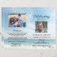 PARA HOMEM OU MULHER! Programa de Fotografia Funeral Memorial da Ordem de Serviço. Ele apresenta uma vista serena de praia com um céu de verão, areia, ondas; uma foto na frente e uma foto da família no verso. Use a ferramenta Personalizar para adicionar suas informações e adicionar facilmente suas fotos. Para obter itens correspondentes, visite minha Celebração da Coleção de Vistas do Oceano Marítimo de Vida.