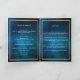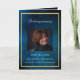 Um elegante programa de 4 páginas. Um céu azul escuro como fundo, uma falsa estrutura dourada e espaço para a sua foto na frente. Personalize e adicione nome, datas e texto. Texto branco.