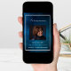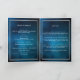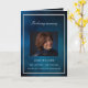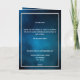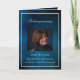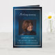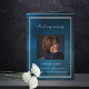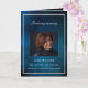Um elegante programa de 4 páginas. Um céu azul escuro como fundo, um falso quadro prateado e espaço para sua foto na frente. Personalize e adicione nome, datas e texto. Texto branco.