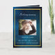 Um elegante programa de 4 páginas. Um céu azul escuro como fundo, uma falsa estrutura dourada e espaço para a sua foto na frente. Personalize e adicione nome, datas e texto. Texto branco.