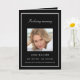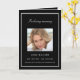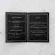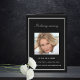 Um elegante programa de 4 páginas. Um fundo preto, uma moldura prateada falsa e espaço para sua foto na frente. Personalize e adicione nome, datas e seu texto. Texto branco.