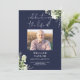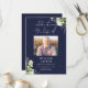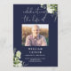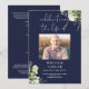Um elegante programa de funeral memorial em azul marinho com greenery em aquarela botânica. Concebido por Thisisnotme©