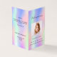 Um elegante programa de 4 páginas. Um arco-íris feminino, fundo holográfico em rosa, roxo, azul e verde-menta. Personalize e adicione uma foto, nome, datas e texto.