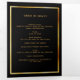 Um elegante programa triplo. Um fundo preto clássico, uma falso estrutura dourada, florais pretos e espaço para sua foto. Personalize e adicione nome, datas e texto.