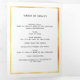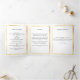 Um elegante programa triplo. Um fundo branco, uma falso estrutura dourada, florais burros e espaço para a sua foto. Personalize e adicione nome, datas e texto.