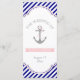Marinho azul, listras brancas e a cerimônia de náutica e programa de festas. Um design de padrão na moda elegante com faixas de marinho azul, diagonal branca, âncora de cinza com coração e corda de amor cor-de-rosa macio e o seu texto em um quadro com um banner rosa. Moderno, mas com vintage, parece de certo modo. Você pode alterar o plano de fundo e a cor do texto escolhendo entre mais de 200 cores do gráfico de cores do Zazzle. Este design de classe é um modelo completamente personalizável e faz parte de um casamento perfeito para um casamento náutico ou praia de verão.