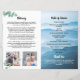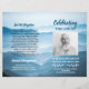 [Todo o texto é EDITÁVEL] Programa Funeral dobrável e econômico com uma foto na frente e duas fotos na página dentro. Tema: Montanha e Céu. Estilo: Calmo e pacífico. Sexo: Unisex. Cores: Azul e Branco. Gráficos: Linda paisagem com camadas de montanhas no céu.