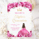 Este elegante e glamouroso programa Quinceañera apresenta uma bela princesa com cabelo escuro num vestido de bola rosa quente. O texto combina o script manuscrito e as fontes sans serif modernas para um aspecto elegante e sofisticado. Os arranjos florais e o confete de ouro criam a mistura perfeita de rústicos e quicos. Gráficos por www.etsy.com/uk/shop/SunflowerDayLove
