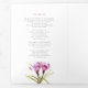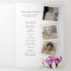 Programa funerário de serviço de dupla face floral roxo primavera crocus floral botânico de arte de aquarela floral. Substitua o texto de exemplo e nove fotos com marcadores de posição por suas próprias fotografias especiais, ordem de serviço memorial, obituário, leitura ou poema, e reconhecimentos, e outros detalhes de informações pessoais, conforme necessário. Pintor de flor de croco com aquarela original e design por Sarah Trett para www.mylittleeden.com (as fotos são apenas imagens marcadoras para você substituir por suas próprias fotos especiais).