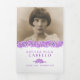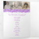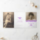 Programa funerário: programa de serviço "gatefold floral esqueçam-me", não flores, programa de funeral em branco, roxo, com toques de amarelo e verde em papel branco. Basta substituir o texto de exemplo e os porta-fotos por suas próprias fotos e detalhes de informações especiais. Desenho original em tinta e trabalho de arte de aquarela e design por Sarah Trett para www.mylittleeden.com (fotos são apenas imagens marcadoras para você substituir por suas).