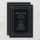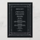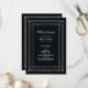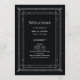 Este glamouroso programa de casamento apresenta um giro moderno em deco de arte clássico. Uma imagem geométrica branca e ornamentado e ornamentação decoram um elegante fundo preto de onyx escuro para um espetáculo dramático e vintage de boas-vindas.