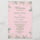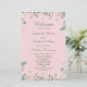 Na moda e elegante borda floral em um programa de casamento de fundo cor-de-rosa macio, com um adorável design. O texto pode ser personalizado para o seu dia de casamento, aniversário ou qualquer tipo de celebração.