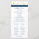 Programa de casamento personalizado em azul escuro e branco com confete dourado e texto de estilo manuscrito. Personalize esta ordem de cartões de cerimônia com o seu próprio texto.
