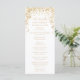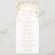 Elegante, porém festivo são estes programas de casamento decorados com guisado de ouro brilhante e fita amarela. O confetti forma um quadro no topo, com seu texto personalizado em ouro abaixo dele. As imagens e o texto são colocados sobre um fundo branco. A parte de trás do programa é branca sólida, com um campo de texto para os nomes da festa de casamento. Faça-o dizer o que quiser! Para alterar o tamanho, a cor, o local ou a fonte do texto, use Personalizar.