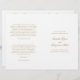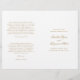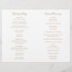 Programa de casamento dobrado ao estilo tradicional com um simples design com seus nomes e os cabeçalhos em uma caligrafia elegante. A frente tem seus detalhes de eventos, a dentro tem sua festa de casamento e ordem de cerimônia. O verso tem um modelo para a sua mensagem / aspas. Este estilo clássico de ouro e design branco é perfeito para um casamento formal. Estes programas de casamento baratos são impressos em folhas de papel para uma opção econômica.