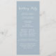 Uma longa e fina cerimônia de noivado, modelo de serviço. Este design apresenta um programa azul-poeirento de cerimônia de casamento, com lindas flores azuis de rosa floral botânico azul e uma ordem de serviço simples flores florais, minimalistas de verde botânico, tipografia mínima de escrita caligráfica, letra moderna de escrita caligráfica, cerimônia formal tradicional de igreja, guião de texto minimalista, programa de dobradura foliar, programa fotosimples de dupla face, programa simples e água elegante modelo