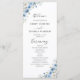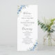 Dusty Blue Ivory Wedding Program. Este na moda e elegante Convite para Chá de Casamento apresenta uma linda coloração d'água pintada manualmente Dusty Blue Ivory Floral. Localize itens correspondentes na Coleção Floral de Marfim Azul empoeirada.