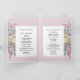 Estes encantadores programas de casamento dobrados são feitos para complementar com nossa coleção de Flores Selvagens e têm um exterior cor-de-rosa empoeirado com folhagem botânica verde e flores cor-de-rosa. Adicione seus nomes, local de casamento e data na frente. Personalize o interior com sua cerimônia e informações sobre festas noivas, assim como um cartão de obrigado para seus convidados.
