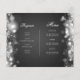 Convite para o festival de Natal Elegante com programa e menu apresentando as Luzes de Natal em Prata.