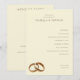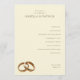 This wedding program features a minimalist and elegant design with a warm beige background, creating an inviting atmosphere. The layout is structured with a hierarchical arrangement of text in a classic serif font, highlighting the ceremony details such as "Exchange of Vows" and "Unity Ceremony." Gold rings are subtly illustrated at the bottom left, adding a symbolic touch to the understated aesthetic. Perfect for couples seeking a serene and sophisticated look, this design emphasizes clarity and simplicity, making it ideal for formal weddings.
