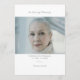 Honor a beautiful life with this modern funeral program featuring a cherished photo and the timeless phrase “In Loving Memory.” Thoughtfully designed for a memorial service, funeral, or celebration of life, this elegant program in a soft gray font color provides a meaningful and organized way to guide guests through the service while creating a lasting keepsake. The front showcases a prominent photo tribute, allowing your loved one’s memory to take center stage, while the clean, simple and minimalist layout offers a refined and contemporary feel. The order of service is clearly structured, feel free to use the format provided or create one that is appropriate for your service. Perfect for those seeking a modern, elegant funeral program, this design balances emotion and simplicity. Fully customizable with names, dates, obituary details, and personal messages, this memorial service program becomes a heartfelt tribute guests will treasure. You can find this program for a funeral service, plus other tastefully designed funeral stationary and signs in the Modern Minimalist In Loving Memory Collection in The Gathering Designs store.