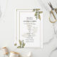 The design combines a refined typographical layout with subtle, soft-colored greenery to create a sophisticated and understated look. The lettering may feature an elegant script font to add a touch of romance. This is part of a complete set.