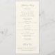 This elegant ivory and taupe wedding program features an ornate crest at the top with the monogram initials of the bride and groom in fancy formal script font.