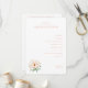 This is a minimalist style image featuring an elegant wedding ceremony program. The design showcases delicate typography in soft peach tones, creating a warm and inviting atmosphere. A beautiful illustration of pale pink peonies with green leaves adds a touch of natural charm to the layout. It feels sophisticated yet personal, perfect for setting the tone for a memorable celebration.