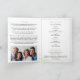 A beautiful and elegant folded funeral program adorned with simple elegant white roses.