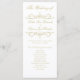 Seus convidados ficarão encantados com este elegante programa de casamento. Foguetes Dourados e detalhes personalizados para todas as suas necessidades. Coordena-se com a nossa suíte de convite para casamento Elegante White e Monograma Dourada, projetada pela artista Susan Coffey.